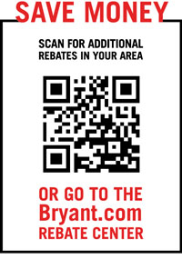 But don't forget—you can also use the Rebate Center QR code on your marketing materials to give your customers that same one-click convenience. The Bryant Rebate Center adds up all the potential rebate savings your customer can earn with qualifying high-efficiency products including Bryant Bonus (in season), government and utility credits and incentives.