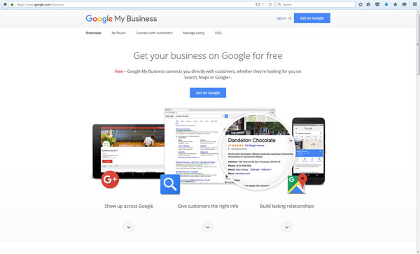 Google My Business also allows you simply to create your free business listing. When potential customers search Maps for local information, they'll find your business: your address, hours of operation, even photos of your storefront or products. It's easy, free, and you don't need a website of your own.